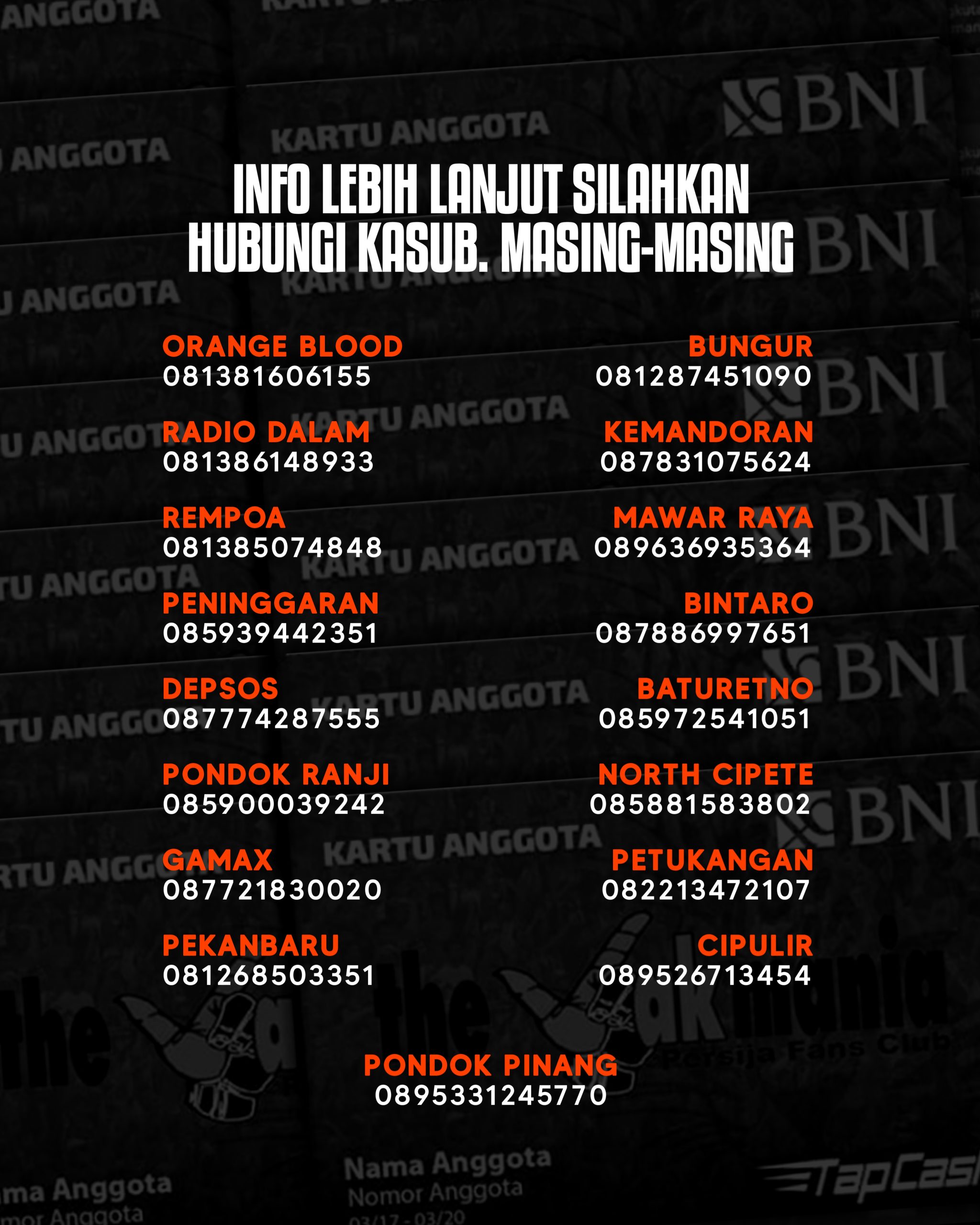 Hallo Jak.. Kabar gembira untuk kalian para the Jakmania khususnya yang berada di wilayah Pondok Pinang dan sekitarnya. Saat ini the Jakmania Korwil Pondok Pinang kembali membuka pendaftaran/perpanjang KTA the Jakmania yang akan dibuka mulai 1 Oktober 2022 s/d 7 Oktober 2022.