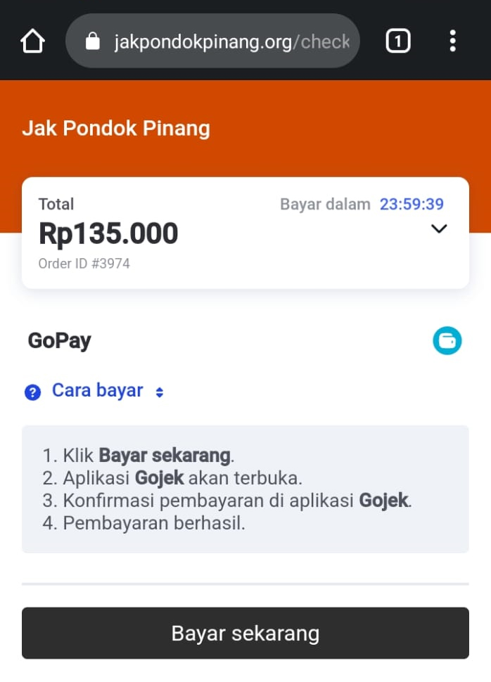 Batas waktu pembayaran Gopay adalah 20 menit. Apabila kalian melewati batas waktu pembayaran maka kalian harus mengulang proses pendaftaran dari awal.