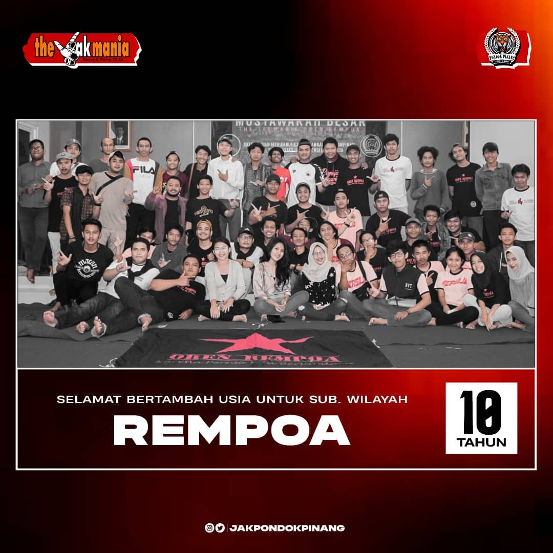 Selamat ulang tahun yang ke-10 untuk Sub.Wilayah the Jakmania Oren Rempoa. Semoga semakin solid dan semakin militan dalam mendukung tim kebanggaan kita, Persija Jakarta.Jaya Raya selalu untuk kalian, the Jakmania Oren Rempoa👆💛