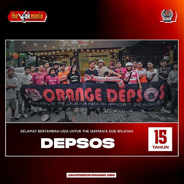 Selamat ulang tahun yang ke-15 untuk the Jakmania Sub.Wilayah Orange Depsos. Semoga semakin solid dan semakin militan dalam mendukung tim kebanggaan kita, Persija Jakarta.Jaya Raya selalu untuk kalian, the Jakmania Sub.Wilayah Orange Depsos👆💛_#Persija#MacanKemayoran#JakPondokPinang#ONEMI22ION